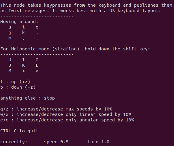 这将启动一个CLI界面,允许您按键命令机器人驾驶。